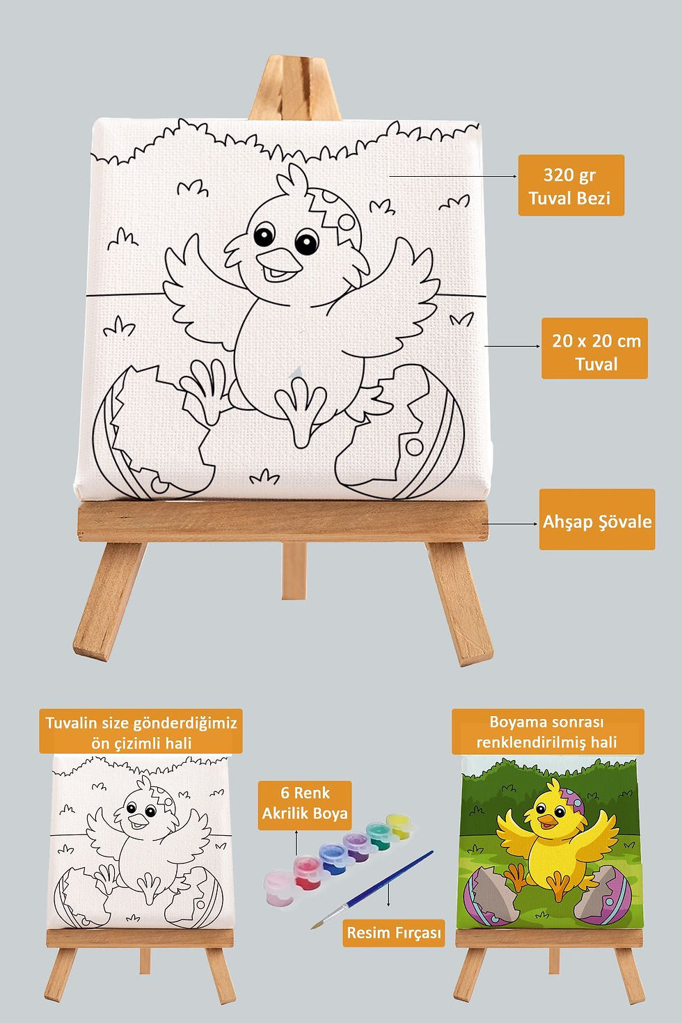 Çocuklarınız için hem eğitici hem de eğlenceli bir deneyim! Dikkat ve konsantrasyonu arttıran bu boyama seti, her seviyeye uygun çeşitli ve özel tasarımlar sunar. Set içerisinde baskılı tuval, şovale, boyalar ve fırça bulunur; böylece tüm kullanım kolaylığından faydalanabilirsiniz. Sanatla dolu saatler onları bekliyor! 🌟